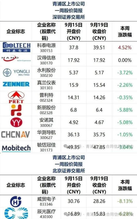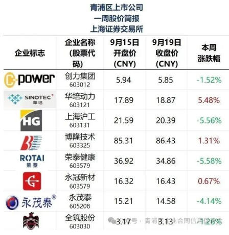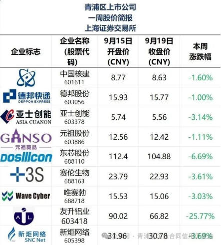 本文“青浦区上市公司一周股价简报”所有在列公司排名不分先后。