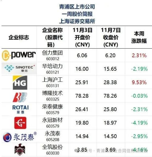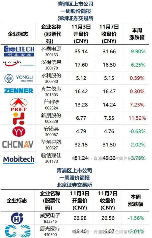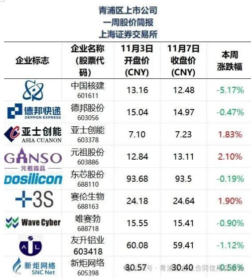 本文“青浦区上市公司一周股价简报”所有在列公司排名不分先后。