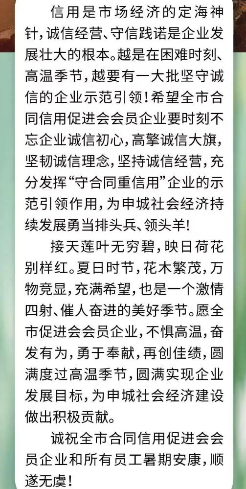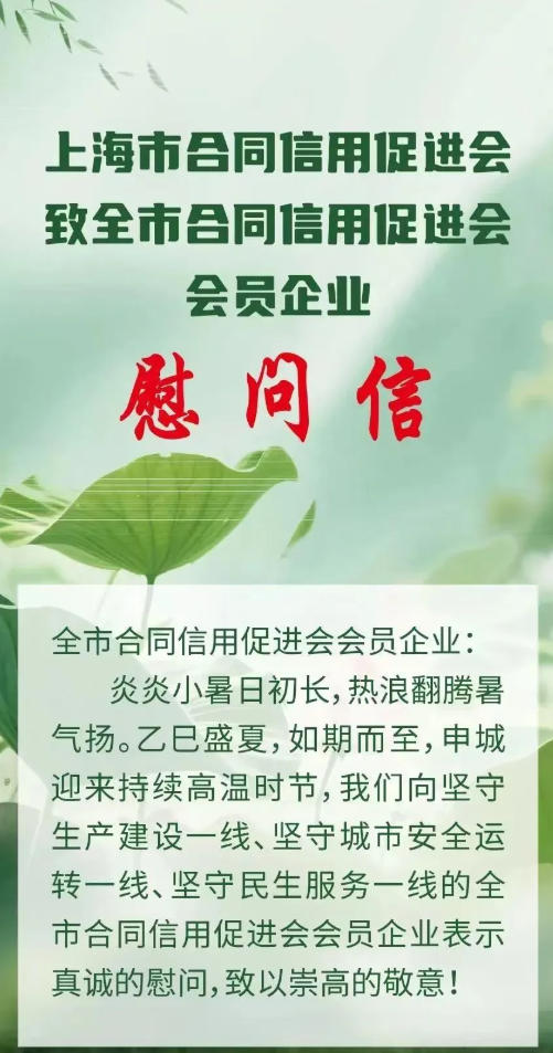 慰问信|转发上海市合同信用促进会致全市合同信用促进会会员企业慰问信~