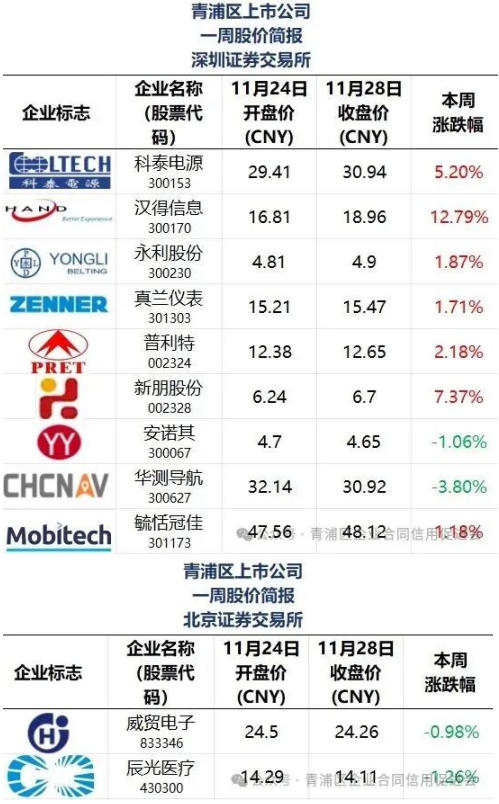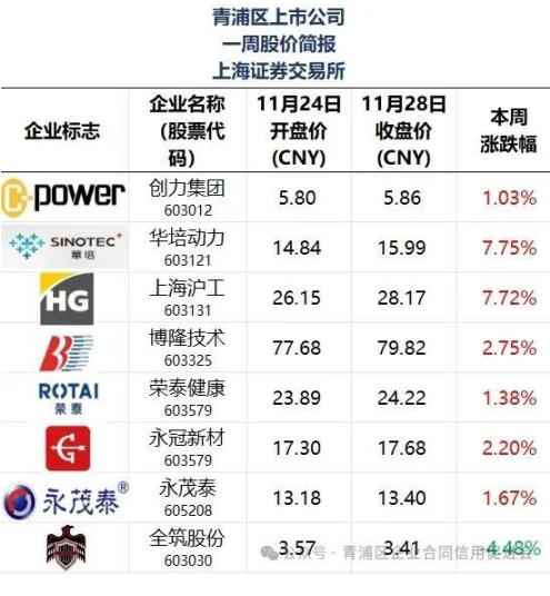 本文“青浦区上市公司一周股价简报”所有在列公司排名不分先后。