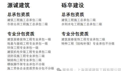 (以下为源诚建筑及全资子公司砾卒建设资质介绍)