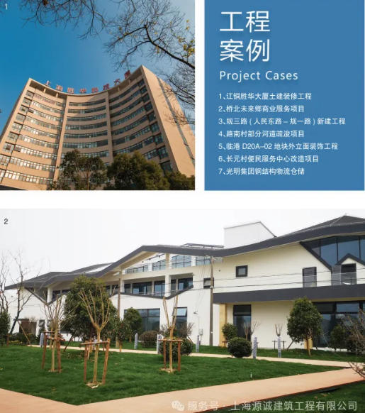上海源诚建筑工程有限公司成立于 2005 年 7 月 1 日,业务涵盖建筑、市政、水利、装饰装修、钢结构、房屋修缮、环保、新能源、园林绿化、景观生态等领域。先后荣获上海市文明单位、上海市守合同重信用企业称号,并通过 ISO 体系认证,标准化管理、规范化运营,以实干助力行业高质量发展,以匠心精品工程服务城市现代化建设。