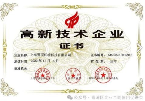 上海置顶环境科技有限公司于2018年1月加入青浦促进会,连续多年获评为上海市“守合同重信用”AAA级企业。