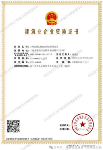 上海创能弘德建筑科技有限公司成立于 2018 年 7 月,注册资本达 1000 万元,是一家经国家市场监督管理总局登记认证的自然人投资或控股有限责任公司。经过多年发展,公司已构建起完善的资质体系,手握防水保温二级、装饰装修二级、环境工程三级资质,同时具备模板脚手架专业分包、施工劳务等多项资质及安全生产许可证(编号:(沪) JZ 安许证字 [2021] 191785),资质齐全且合规,为各类工程施工提供了坚实保障。