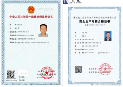 专业的团队是企业发展的核心引擎。创能弘德高度重视人才培养与建设,组建了一支由建造师、工程师、八大员、技工等组成的精英队伍,团队成员态度严谨、技术过硬,实战经验丰富。其中,一级建造师陈志坚等核心管理人才持证上岗,持有安全生产考核合格证书,为工程质量与安全保驾护航。