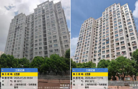 马桥景城馨苑小区外墙外保温整体修复工程,采用无机保温砂浆系统进行整体铲除置换修复,圆满完成 6 号楼施工任务;