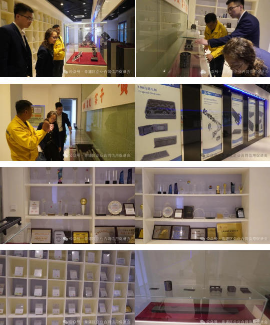 座谈结束后,行政主管熊文清带领合促会一行前往企业展示馆,开展实地参观交流。参观过程中,熊文清详细向来访一行介绍了弘枫实业的发展历程、核心产品、技术优势及所获荣誉,通过实物展示、图文讲解等方式,让合促会工作人员直观了解了企业在半导体、燃料电池等领域的深耕成果,真切感受到了企业的发展实力与创新活力。