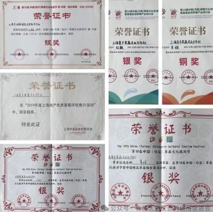 “品质” 是惠丰果蔬的核心:甄选 “红颜” 等优质草莓品种,采用绿色防控技术、夏季高温闷棚杀菌减农药,还邀农科院专家定制生产标准。这份坚守换来诸多荣誉:2018 年临沂草莓文化旅游节银奖、2019 年上海地产草莓铜奖与济南草莓节双奖、2020 年句容草莓节银奖,且 2020 年通过上海 “市级合作社” 验收,奖牌见证其 “匠心种好果” 的初心。