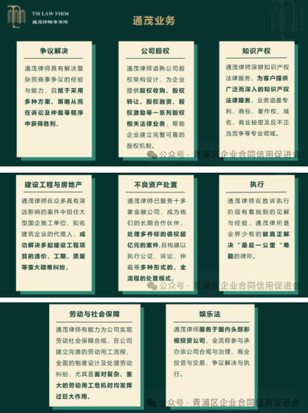 此外,通茂律所在不良资产处置领域,构建了 “执行公证 + 诉讼 + 仲裁” 全流程处置模式,曾为深圳某公司提供房产抵押类贷款不良资产处置方案,一年处置金额达 20 亿元,案件覆盖全国 30 多个城市,最快 2 周内即可出具执行证书;在劳动与社会保障服务中,既能帮助企业搭建合规的人事架构、完善劳动文本,也能在劳动争议中为企业或劳动者争取合法权益,曾成功为某上市服饰集团解除违纪高管、为劳动者逆转劳动仲裁败诉局面,实现 “双向护航”。