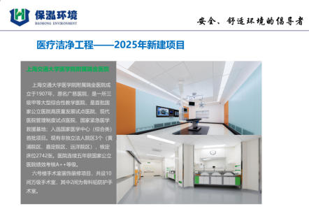 多年来,保泓环境凭借过硬的技术与服务,在医疗洁净工程领域交出了一份亮眼的成绩单,合作对象涵盖多家三级甲等医院及各类医疗机构。