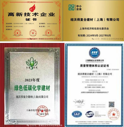 在资质认证方面,纽沃德荣誉颇丰,先后斩获“高新技术企业”“专精特新企业”“创新型企业”等多项重量级资质,同时是上海市节能协会会员、上海市化学建材行业协会团体会员,参编《绿色低碳建材技术要求 建筑涂料》团体标准,其合成树脂乳液外墙涂料通过绿色低碳建材评估,彰显了公司在行业内的技术权威性与行业影响力。此外,公司还通过质量管理体系认证,多项产品获得发明专利、实用新型专利,检测报告均由国家建筑材料测试中心、中国建材检验认证集团等权威机构出具,品质值得信赖。