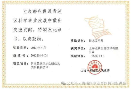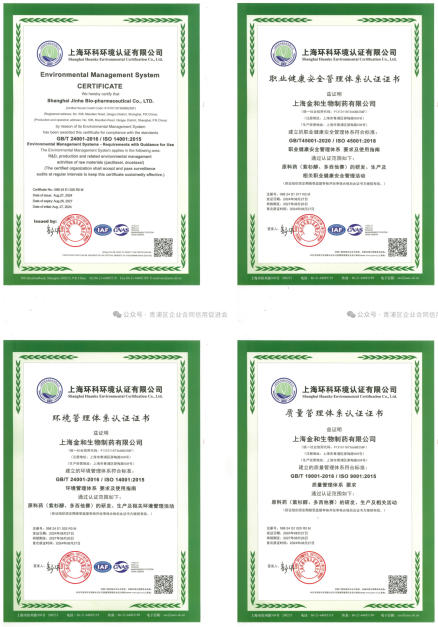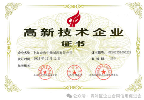 多年来,金和生物的综合实力与行业口碑获得广泛认可。公司连续五届获评高新技术企业,连续四届当选上海市专精特新中小企业,原料药商标连续两届被认定为上海市著名商标,还先后斩获上海市科技小巨人(培育)企业、上海市先进企业、青浦区专利试点企业、青浦区技术中心等多项殊荣。这些荣誉的背后,是公司对品质的极致追求、对创新的不懈探索,更是对社会责任的主动担当。