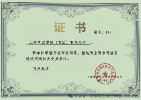 上海卓欧建筑(集团)有限公司于 2022 年加入青浦促进会,连续四年积极参与 “守合同重信用” 评估,始终坚守诚信经营底线。作为一家深耕建筑节能新材料领域的综合服务商,公司专注于 GRC/UHPC 幕墙围护结构的研发和工程应用,集研发、设计、生产、施工与服务于一体,以绿色创新产品为人居环境改善与行业高质量发展注入强劲动力。