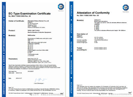 安全光幕家族:S200 系列智能安全光幕、V1000 锻压设备专用安全光幕、S100 系列紧凑型智能安全光幕、SSG20 重载型安全光幕等,其中 S400 系列安全光幕通过 TÜV 南德全球功能安全认证,符合 Type 4、SIL 3、Cat 4、PLe 等国际安全标准,以安全可靠的性能、功能强大的设计筑牢工业生产安全防线;