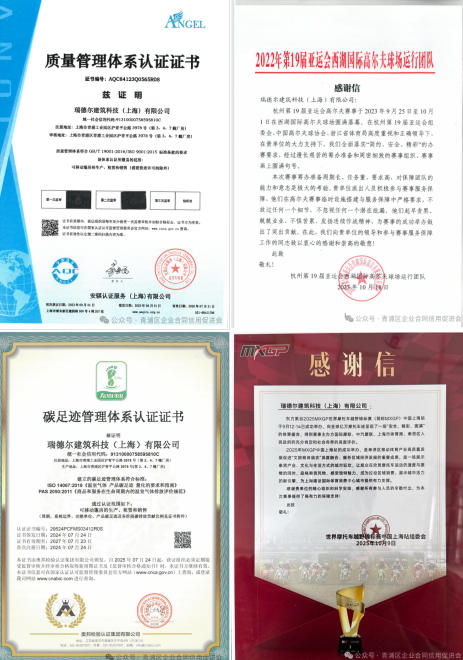 作为技术型国际化企业,瑞德尔的核心竞争力源自深厚的技术积淀与严苛的品质坚守。“德国设计”与“RÖDER制造”是其不变的品质承诺,公司不仅通过了欧洲EN ISO 9001:2008和EN ISO 14001:2009双重认证,更是行业内唯一拥有绿色可持续EMAS认证的企业,所有力学计算均符合欧洲EN ISO13782标准,将环保理念与安全标准贯穿项目全流程。从早期的木质框架结构,到钢架系统现代化升级,再到铝合金轻质结构的研发量产,瑞德尔始终以创新驱动发展,推出的大跨度结构体系、双层篷房系统等产品,广泛应用于大型展览、体育赛事、工业仓储、文化艺术等多个领域。
