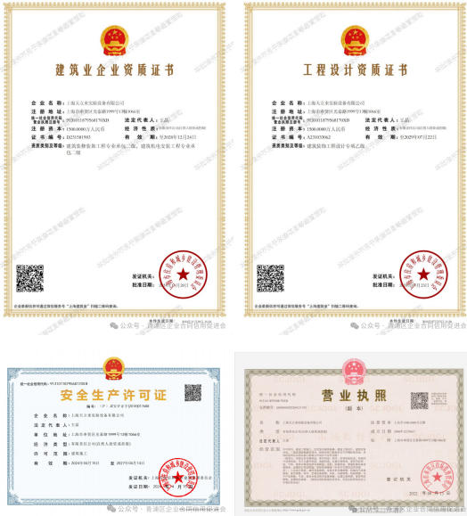深耕行业近二十载,天立来已构建起完善的资质体系,为业务开展提供坚实保障。公司不仅拥有建筑装修装饰工程专业承包二级、建筑机电安装工程专业承包二级、建筑装饰工程设计专项乙级等核心资质,还通过 ISO9001 质量体系认证、ISO14001 环境管理体系认证、ISO18001 职业健康安全管理体系认证等多项权威认证。自 2014 年起成为美国 SEFA 组织会员,2021 年当选上海实验室装备协会副会长单位,更率先通过美国 SEFA-8-2016 检测,参编多项行业团体标准,凭借过硬实力斩获 “诚信单位”“突出贡献单位” 等多项荣誉。