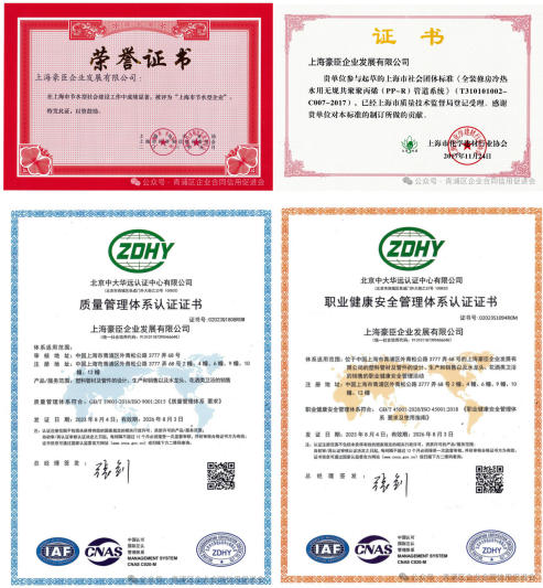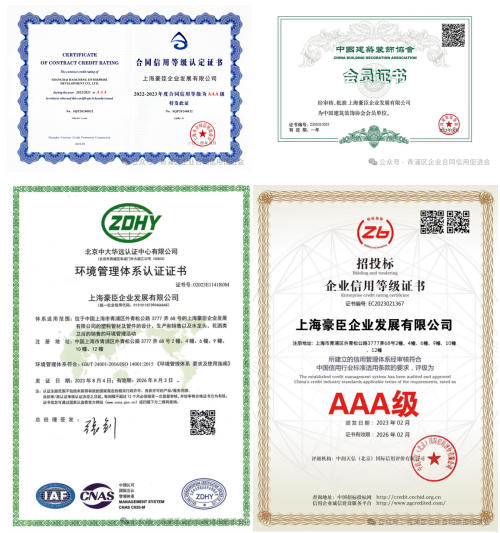 上海豪臣连续多年参与 “守合同重信用” 评估,将诚信经营融入企业发展全过程,赢得合作伙伴与市场的广泛信赖。在品质管控上,企业已通过 ISO9001 质量管理体系、ISO14001 环境管理体系、ISO45001 职业健康安全管理体系及 ISO14024 环境标志产品认证,同时推进卓越绩效评价准则,实现产品质量与企业管理水平的持续提升。秉持 “科技立企、品牌兴企” 理念,企业加大科技创新投入,积极开展产学研合作,在引进消化先进技术的基础上持续创新,使产品主要技术指标达到国际先进、国内领先水平。