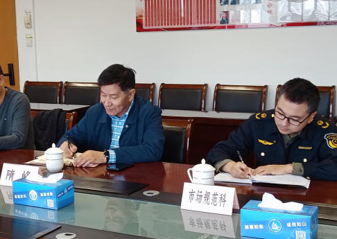 调研伊始,黄建刚会长一行专程前往金山区市场监督管理局进行座谈交流,受到区市场监督管理局隋峰副局长等领导的热情接待。期间,局市场规范科王勇勇科长就相关工作进行了专题介绍。