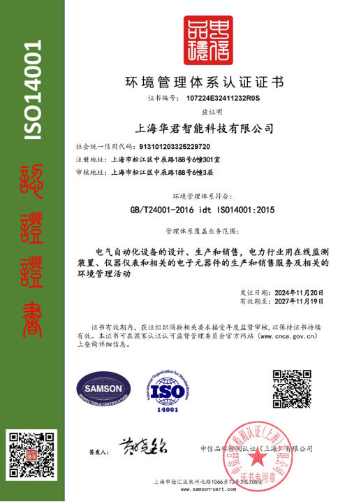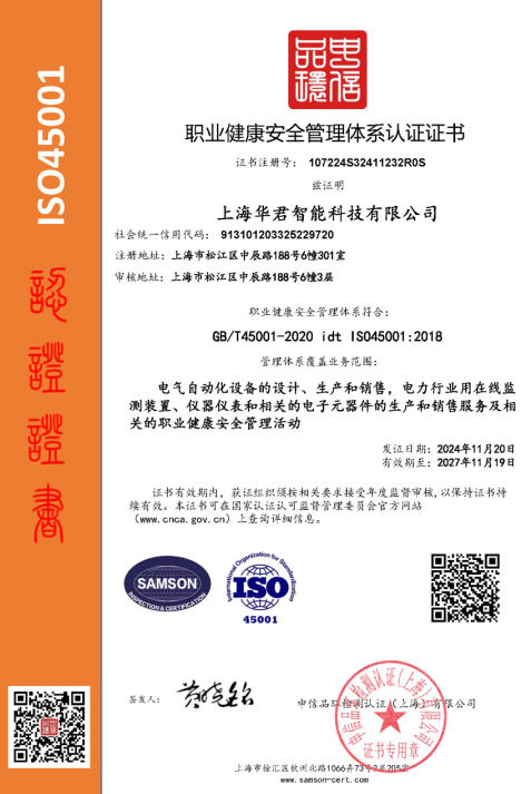 上海华君智能科技有限公司通过强化合同管理、提升信用意识,不仅有效降低了经营风险,保障了企业合法权益,更构建了可持续发展的核心竞争优势。公司主要产品均通过国家有关检测机构型式试验,并取得相应证书。公司目前已全面通过了ISO9001质量管理体系、ISO14001环境管理体系、ISO45001职业健康管理体系等认证并获得相应证书。与此同时,公司也取得了多项国家专利与软件著作权,未来,公司将继续深化合同信用管理体系建设,以诚信为帆,以规范为舵,在科技创新的道路上稳步前行,为行业信用体系建设贡献积极力量。用管理体系建设,以诚信为帆,以规范为舵,在科技创新的道路上稳步前行,为行业信用体系建设贡献积极力量。