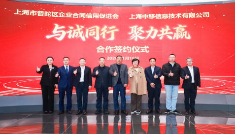 2026年1月16日,上海市普陀区企业合同信用促进会组织开展“走进上海移动”活动,并举行上海市普陀区企业合同信用促进会与上海中移信息技术有限公司合作签约仪式。上海市合同信用促进会副会长兼秘书长乔志毅,普陀区市场监督管理局副书记、副局长俞颖,普陀区民政局党组成员副局长姚继红,上海中移信息党委书记、董事长、总经理庄冀,上海市普陀区企业合同信用促进会会长肖玉火,上海移动商客中心总经理刘洋,上海中移信息党委委员、副总经理章烨,上海移动西区分公司副总经理李斌,中移铁通上海分公司党委委员、副总经理李兴华,普陀区相关部门负责人,浦东合同信用促进会、桃浦镇商会、万里街道商会及上海市芜湖商会、阜阳商会、南陵商会代表,普陀区企业合同信用促进会副会长、理事、会员单位40多家企业代表参加活动并共同见证双方签约。